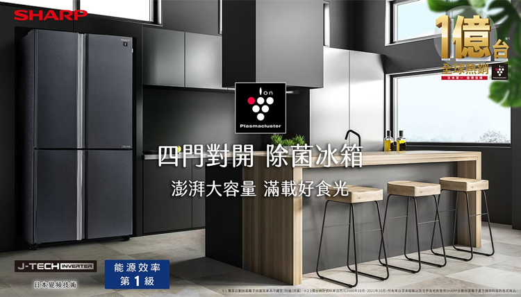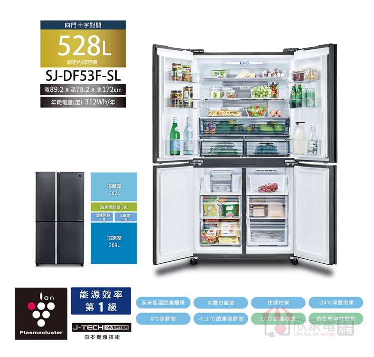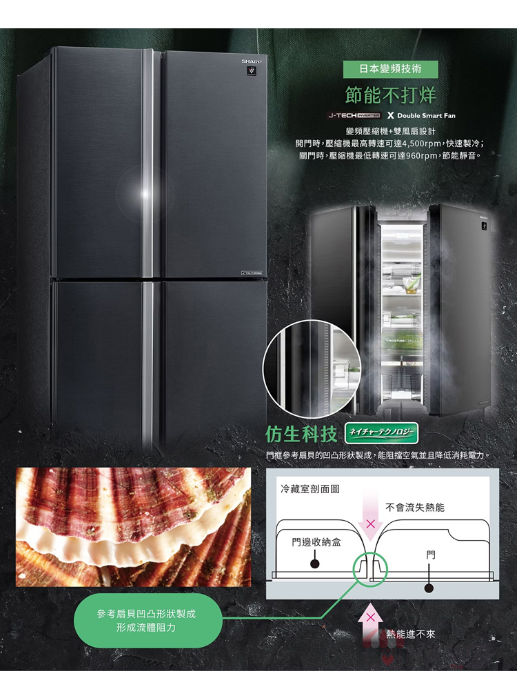 SHARP 夏普 528L 變頻自動除菌離子四門對開冰箱