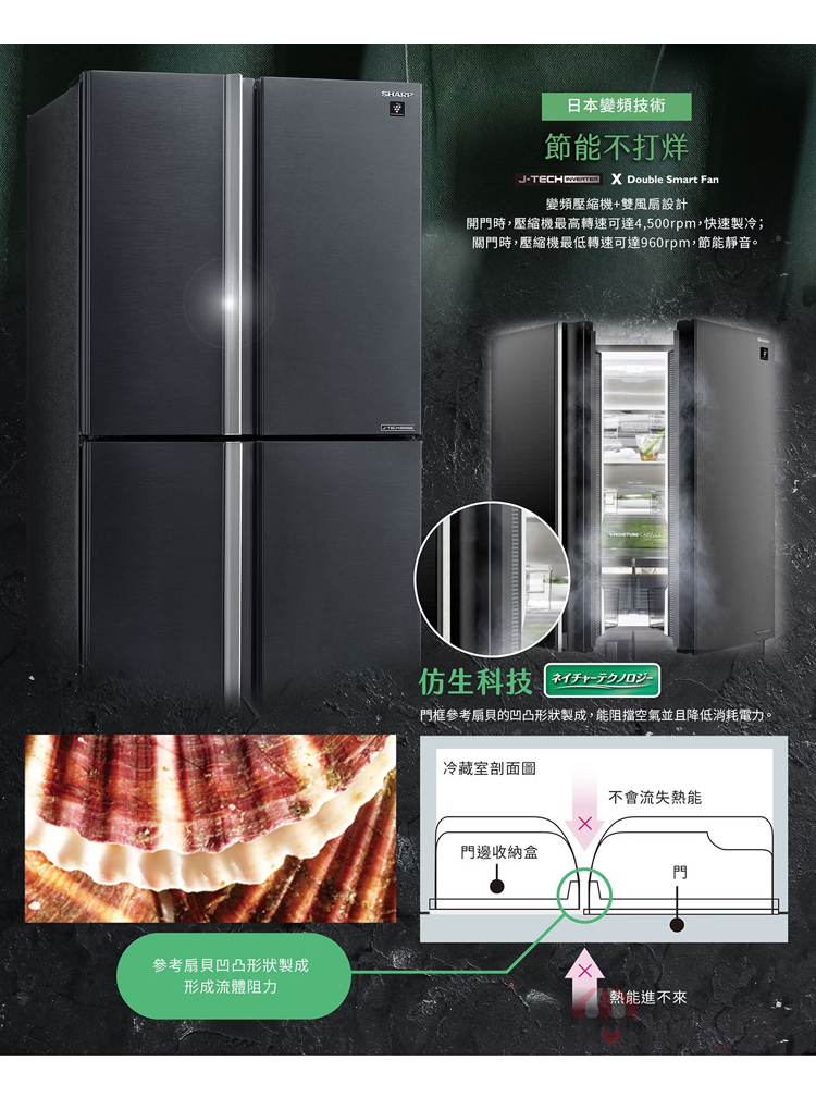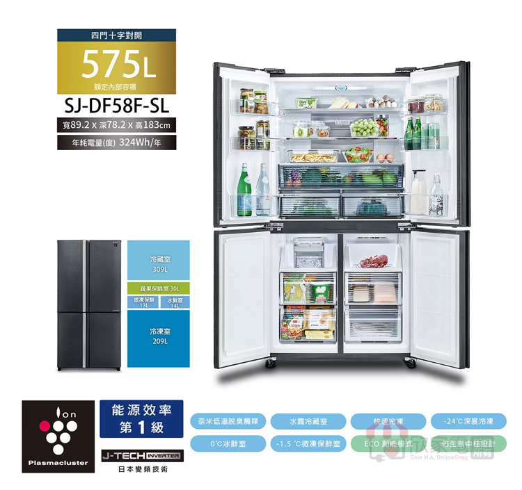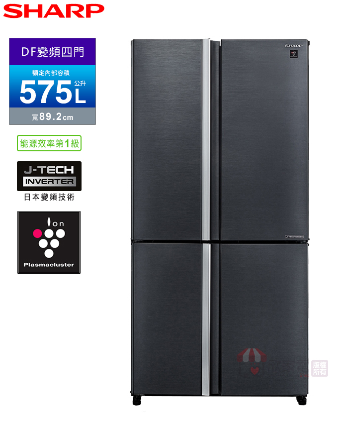 SHARP 夏普 575L 變頻自動除菌離子四門對開冰箱