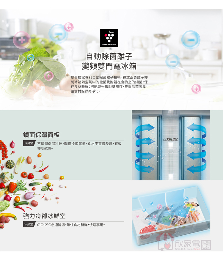 SHARP 夏普 541L 變頻自動除菌離子雙門冰箱