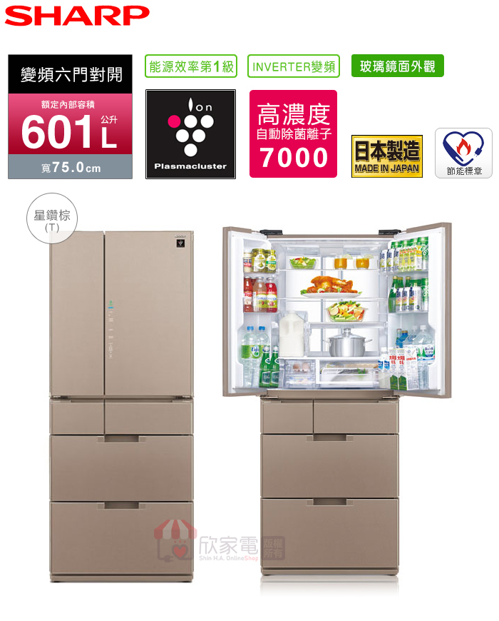 SHARP 夏寶 601L【日本原裝】變頻六門冰箱 -星鑽棕