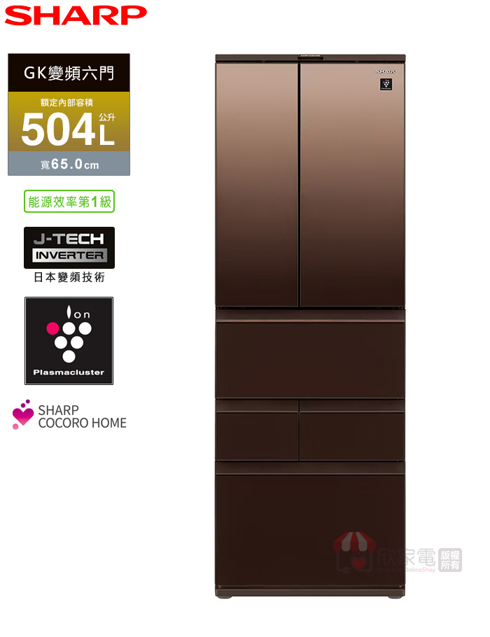SHARP 夏普 504L 變頻AIoT智慧六門對開冰箱 -璀璨棕