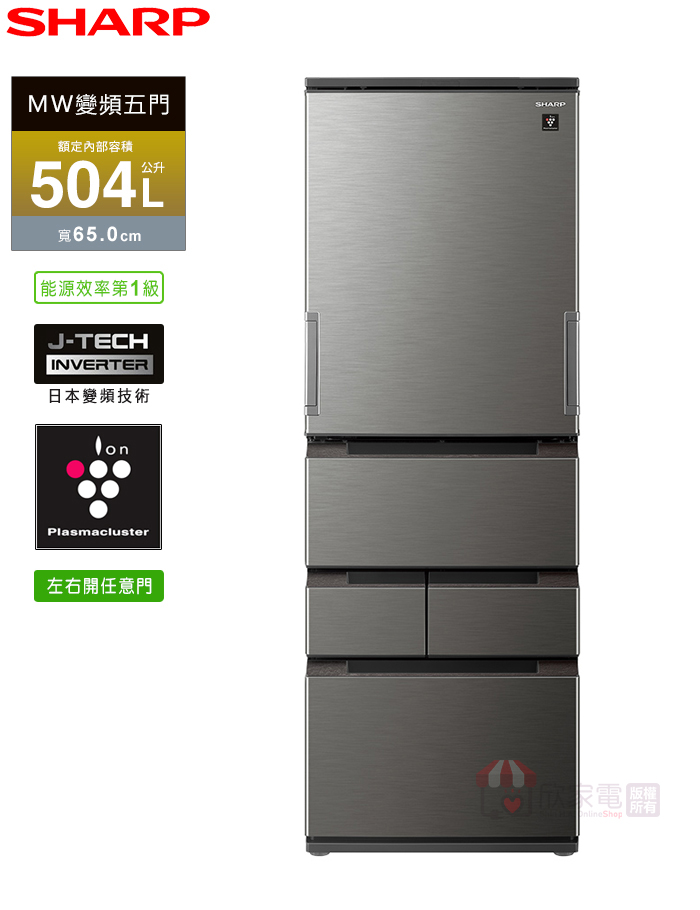 SHARP 夏普 504L 變頻自動除菌離子左右開任意門五門冰箱 -尊爵灰