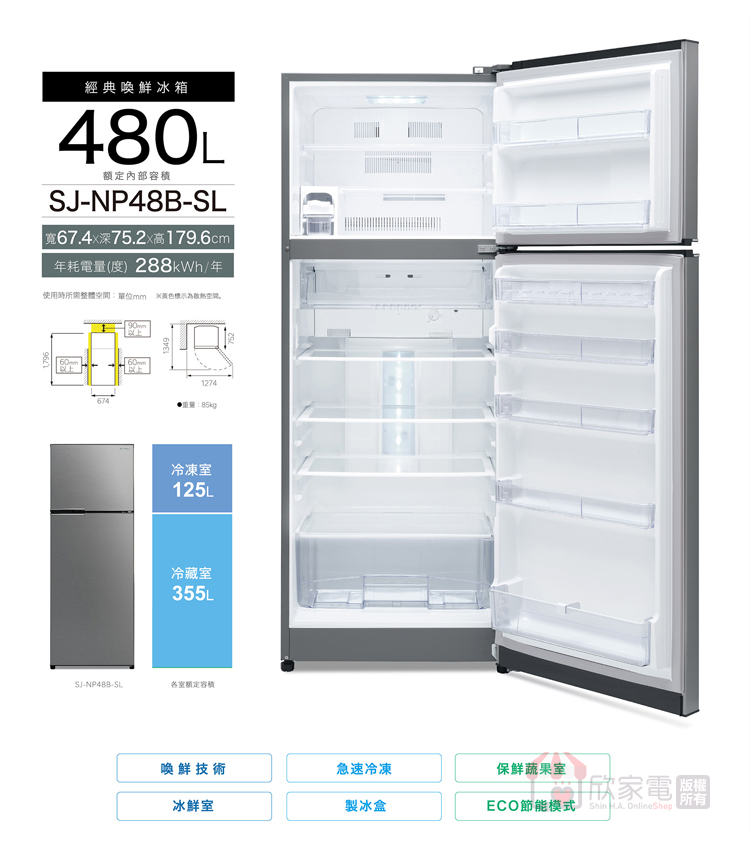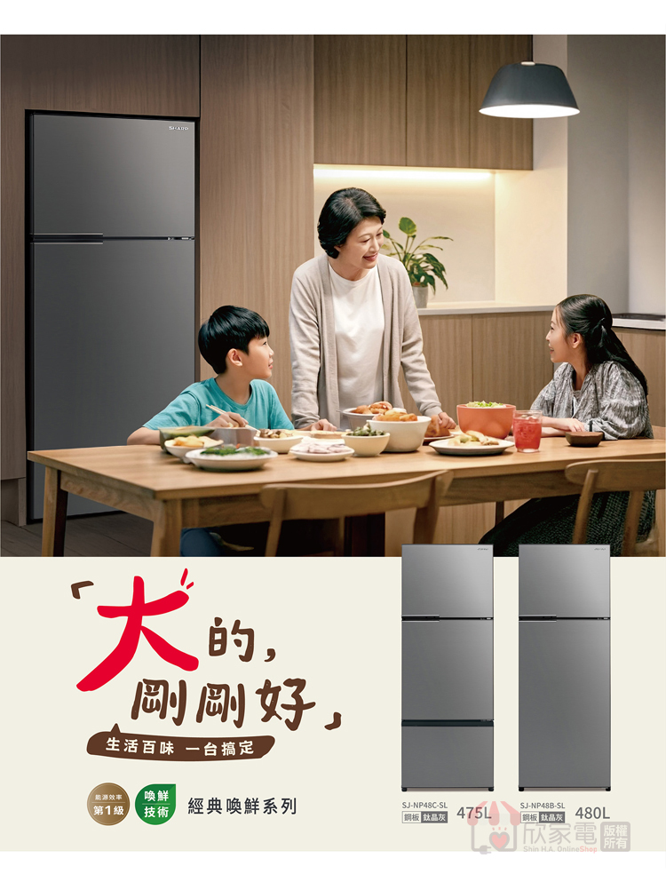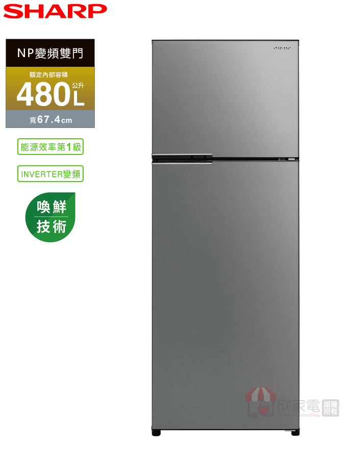 SHARP 夏普 480L 變頻雙門冰箱 -鈦晶灰