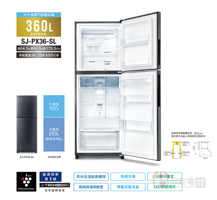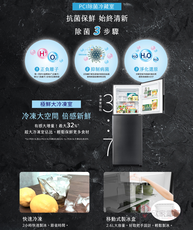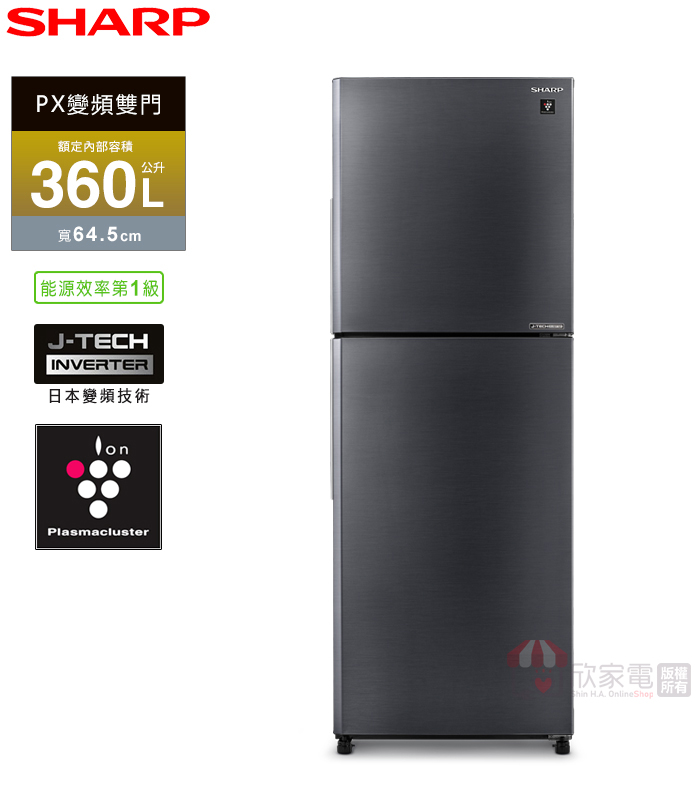 SHARP 夏普 360L 變頻大冷凍除菌雙門冰箱