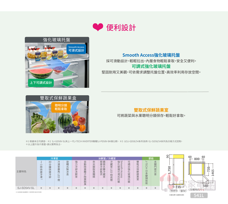 抽屜式蔬果室:O(雙取式保鮮蔬果室)