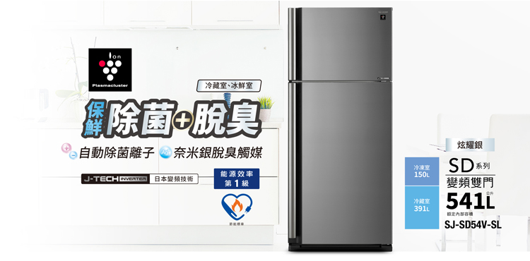 SHARP 夏普 541L 變頻自動除菌離子雙門冰箱