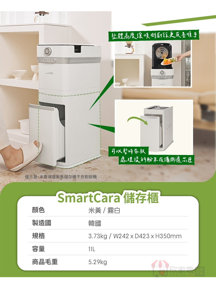 SmartCara 極智美型廚餘機儲存櫃 -霧白