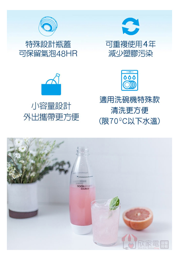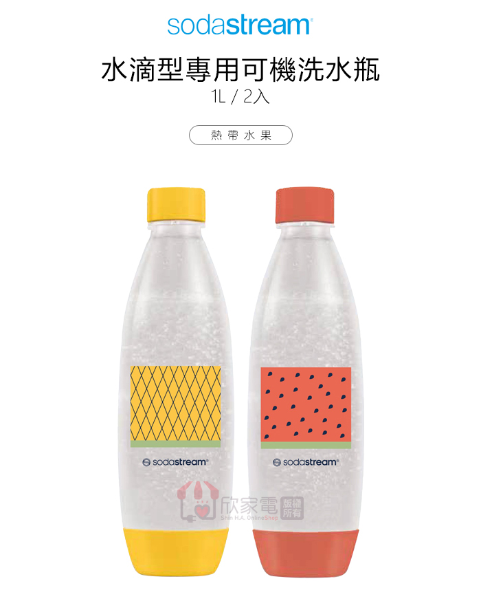 Sodastream 水滴型專用可機洗水瓶1L 2入 -熱帶水果