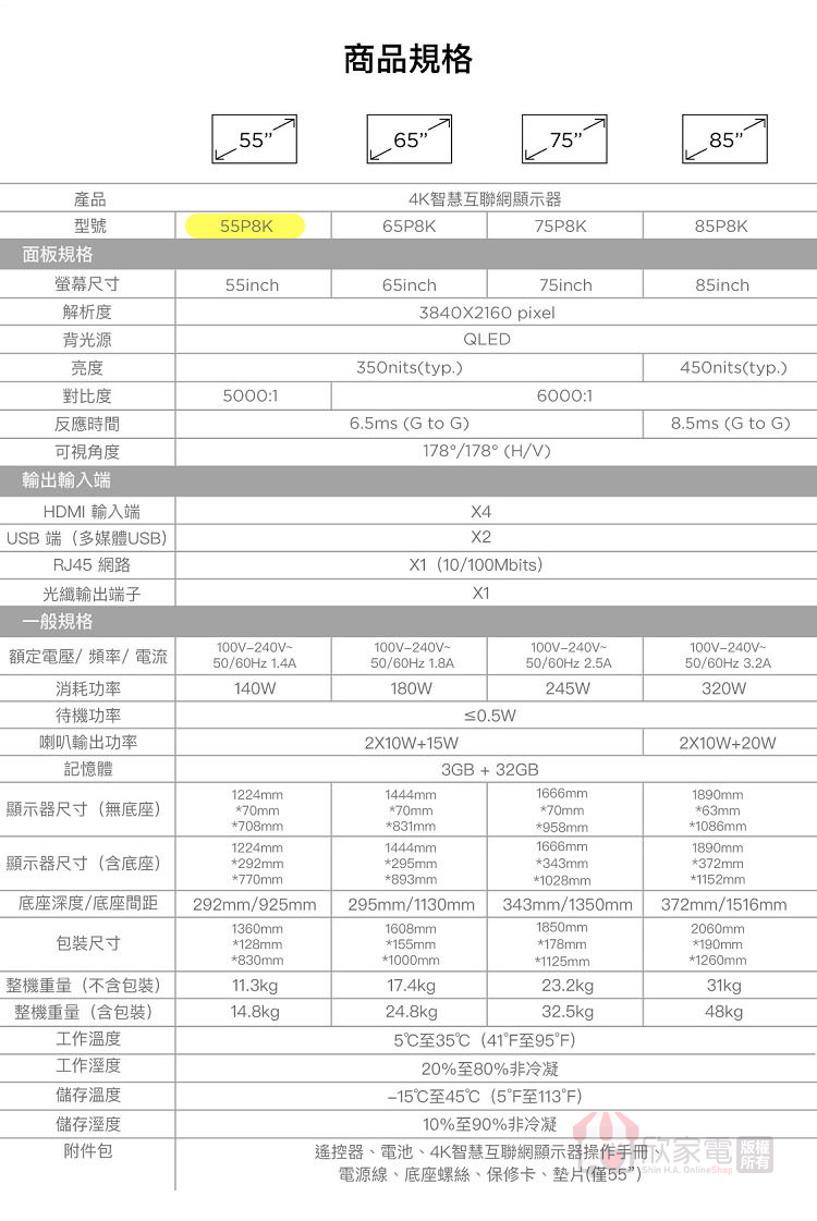 TCL 55型【P8K系列】4K QLED Google TV 量子智能連網液晶顯示器