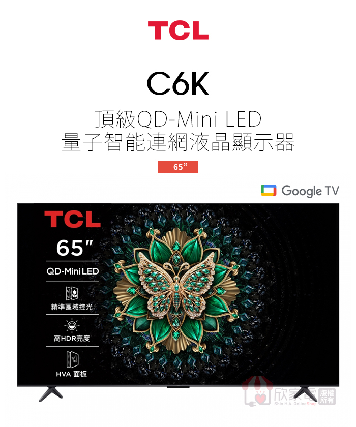 TCL 65型【C6K系列】QD-Mini LED Google TV 量子智能連網液晶顯示器