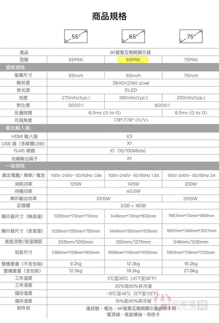 顯示器尺寸(含底座) (WxHxD):1446*878*300 (mm)