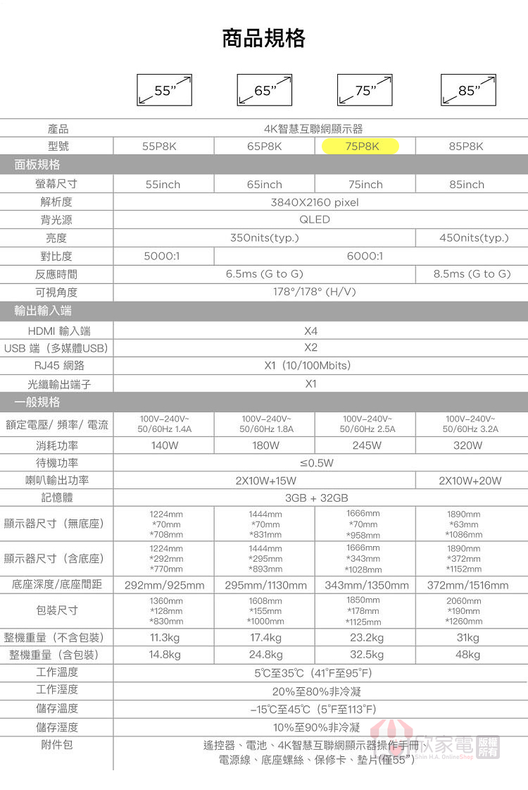 TCL 75型【P8K系列】4K QLED Google TV 量子智能連網液晶顯示器