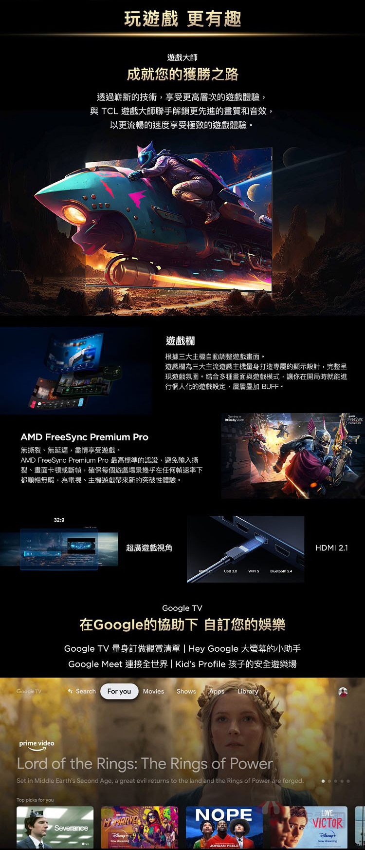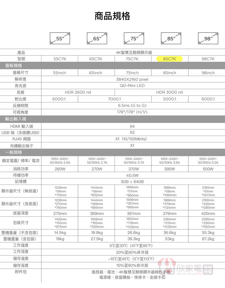 TCL 85型【C7K系列】QD-Mini LED Google TV 量子智能連網液晶顯示器