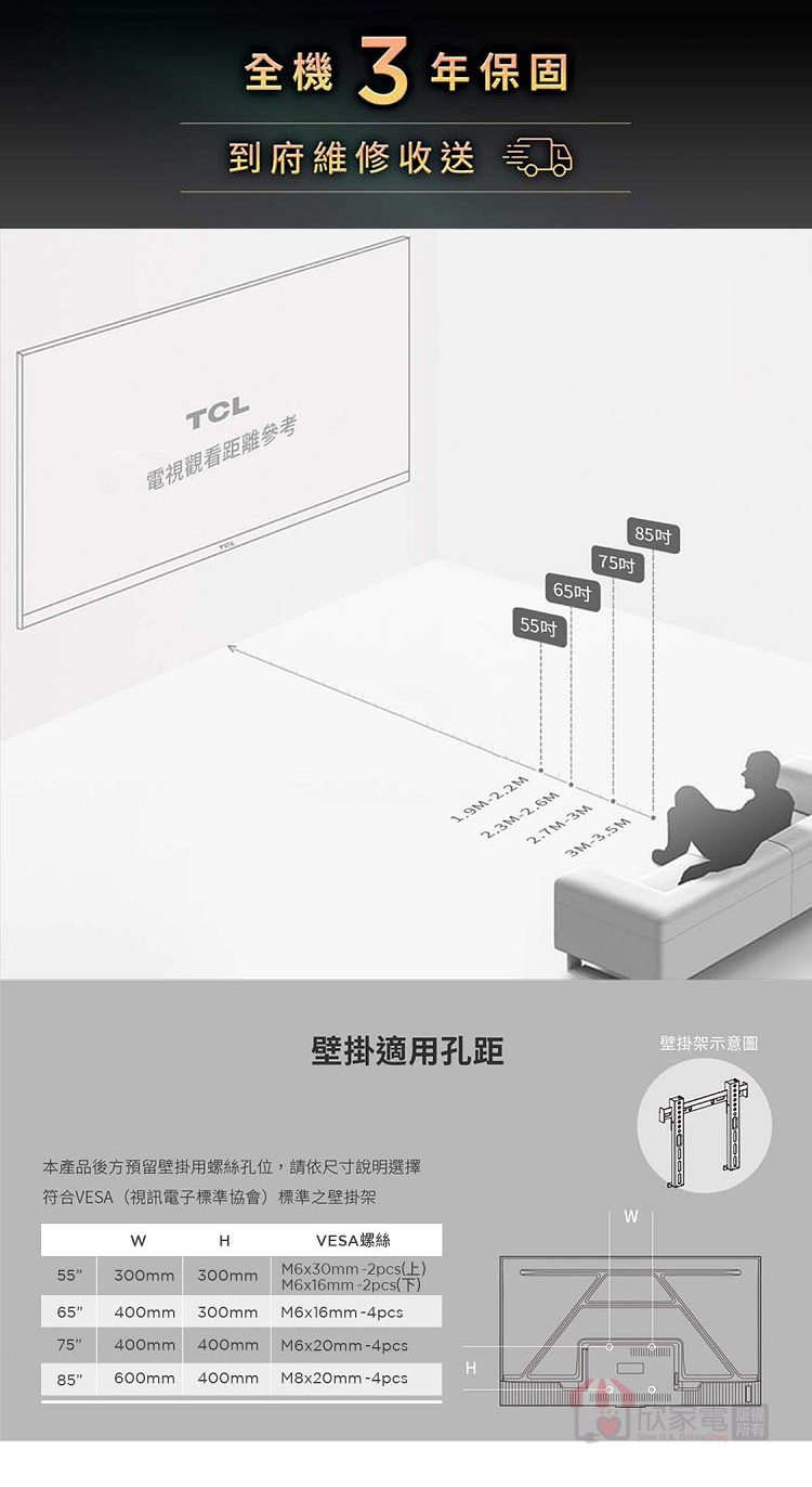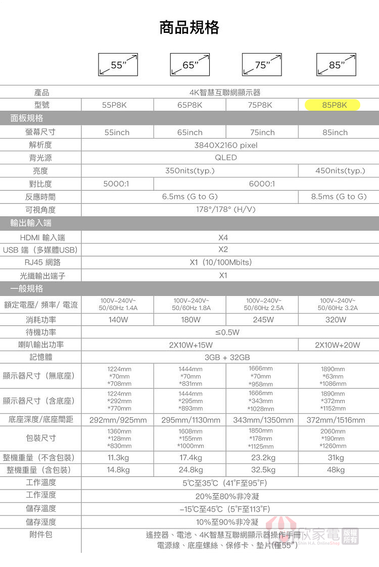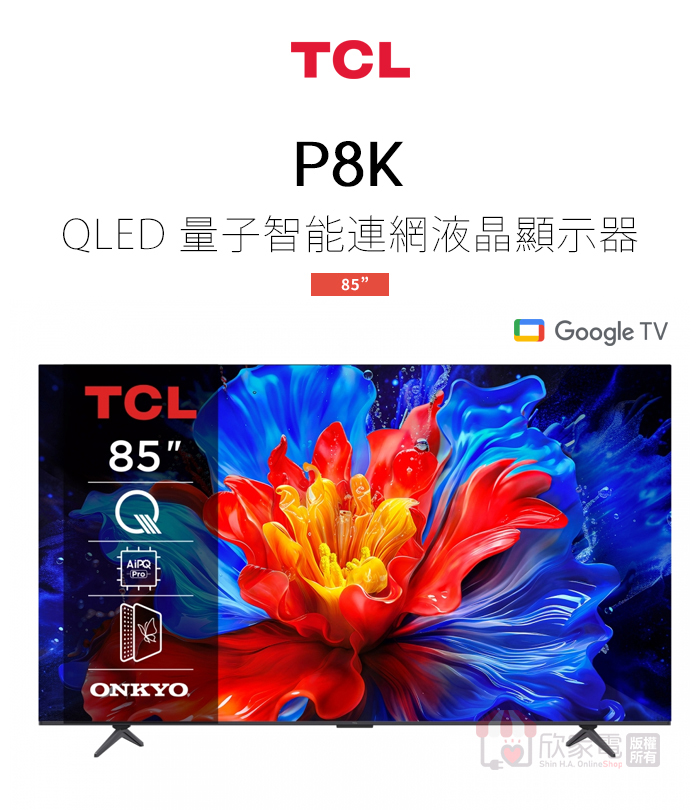 TCL 85型【P8K系列】4K QLED Google TV 量子智能連網液晶顯示器