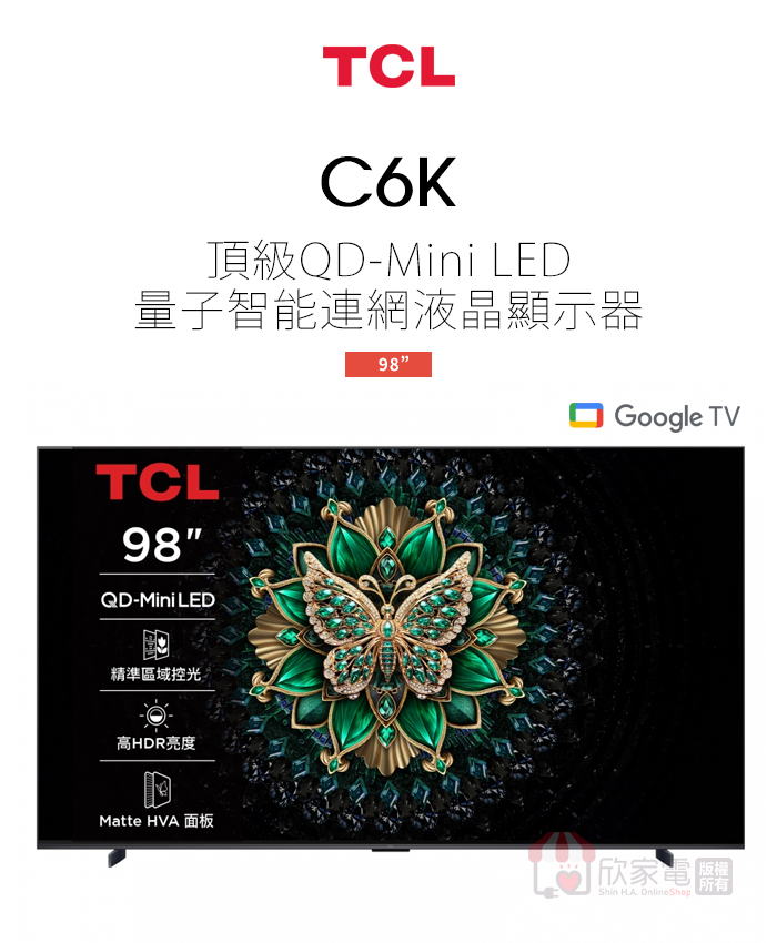 TCL 98型【C6K系列】QD-Mini LED Google TV 量子智能連網液晶顯示器