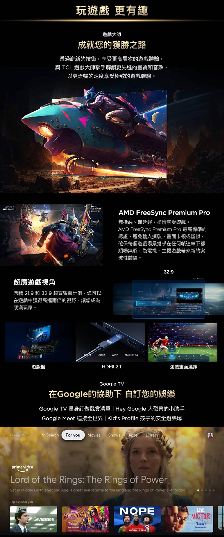 刷新率:MEMC 120HZ; 144Hz, VRR (48HZ~288Hz); DLG 240Hz