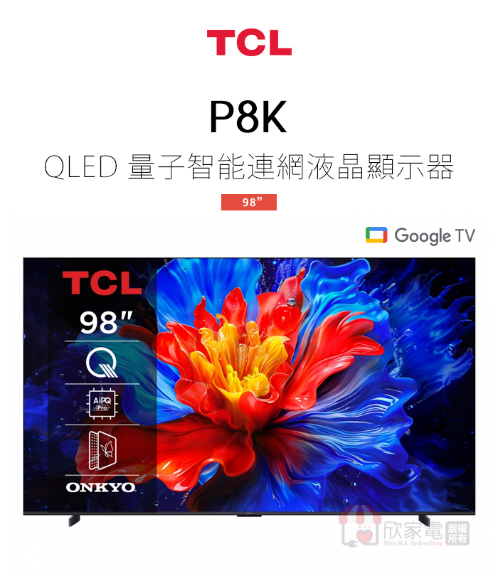 TCL 98型【P8K系列】4K QLED Google TV 量子智能連網液晶顯示器