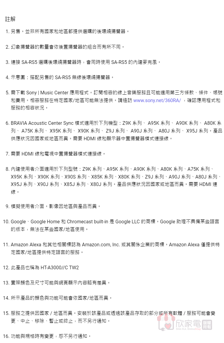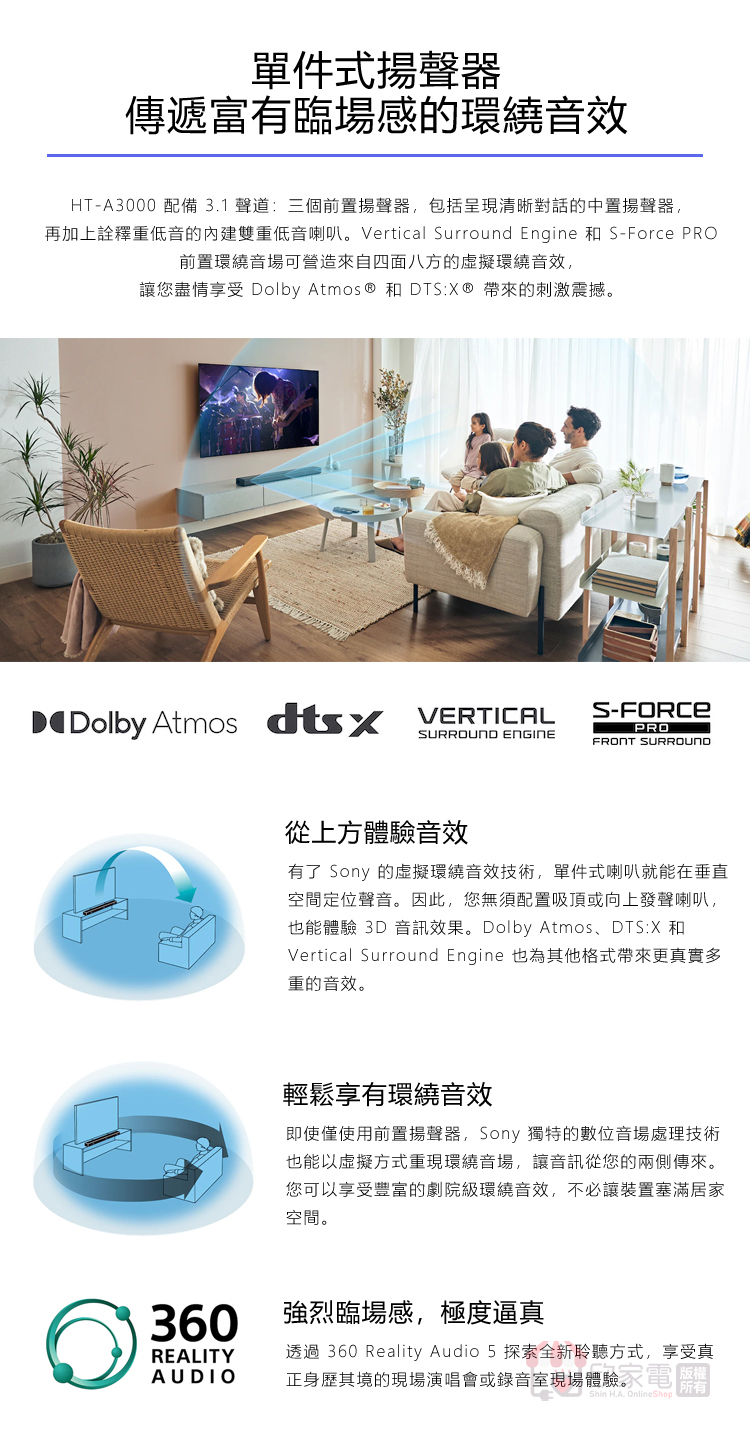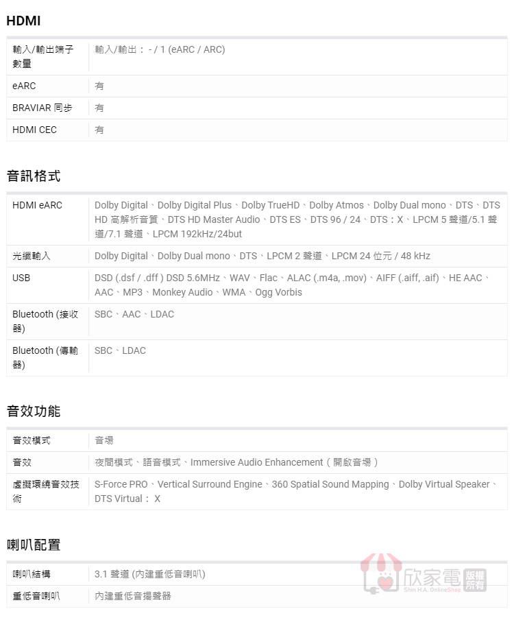 SONY 索尼 3.1 聲道單件式環繞家庭劇院