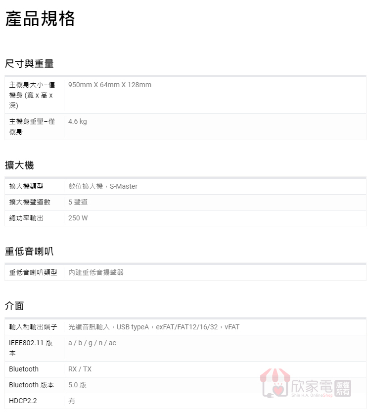 主機身大小–僅機身 (寬 x 高 x 深):950mm X 64mm X 128mm