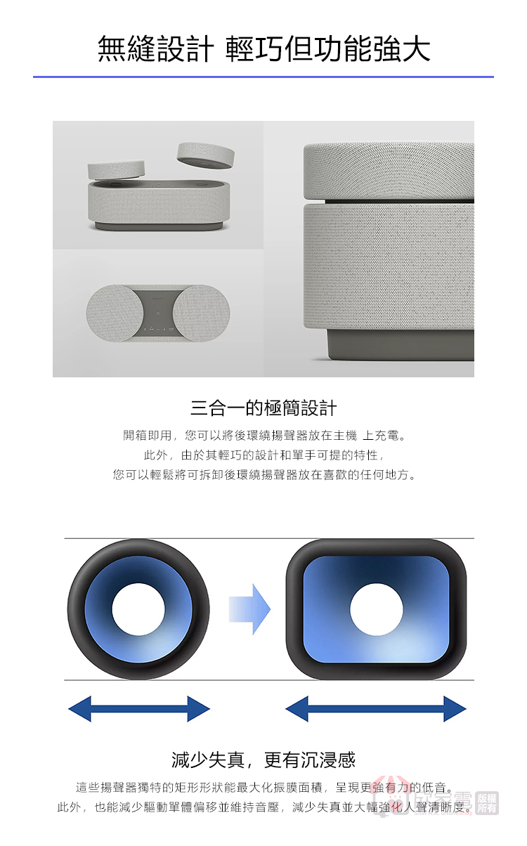 後環繞揚聲器尺寸(寬 x 高 x 深) (mm):122 mm X 39 mm X 122 mm