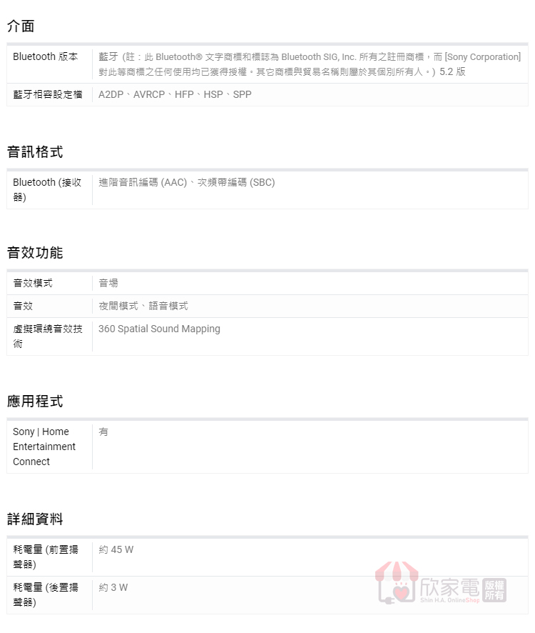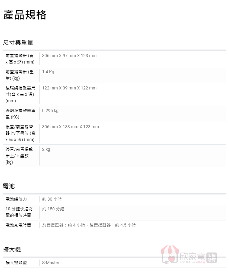 後置/前置揚聲器上/下疊放 (寬 x 高 x 深) (mm):306 mm X 133 mm X 123 mm