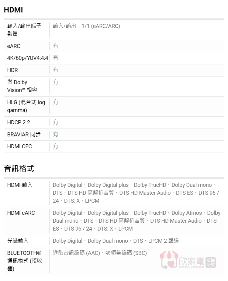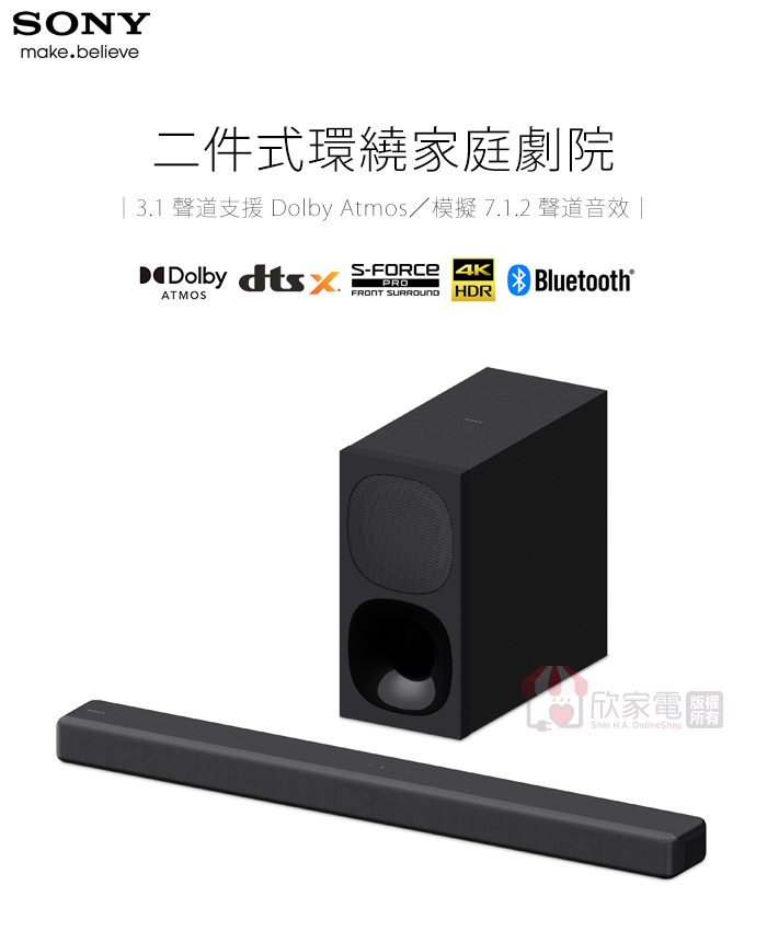 SONY 索尼 BRAVIA 二件式環繞家庭劇院