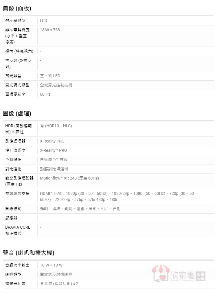 SONY 索尼 32型【W830L系列】智慧顯示器