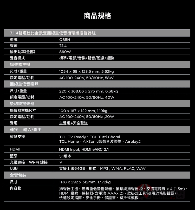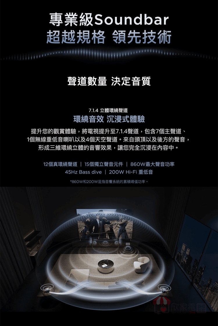 TCL 7.1.4聲道 旗艦家庭劇院聲霸