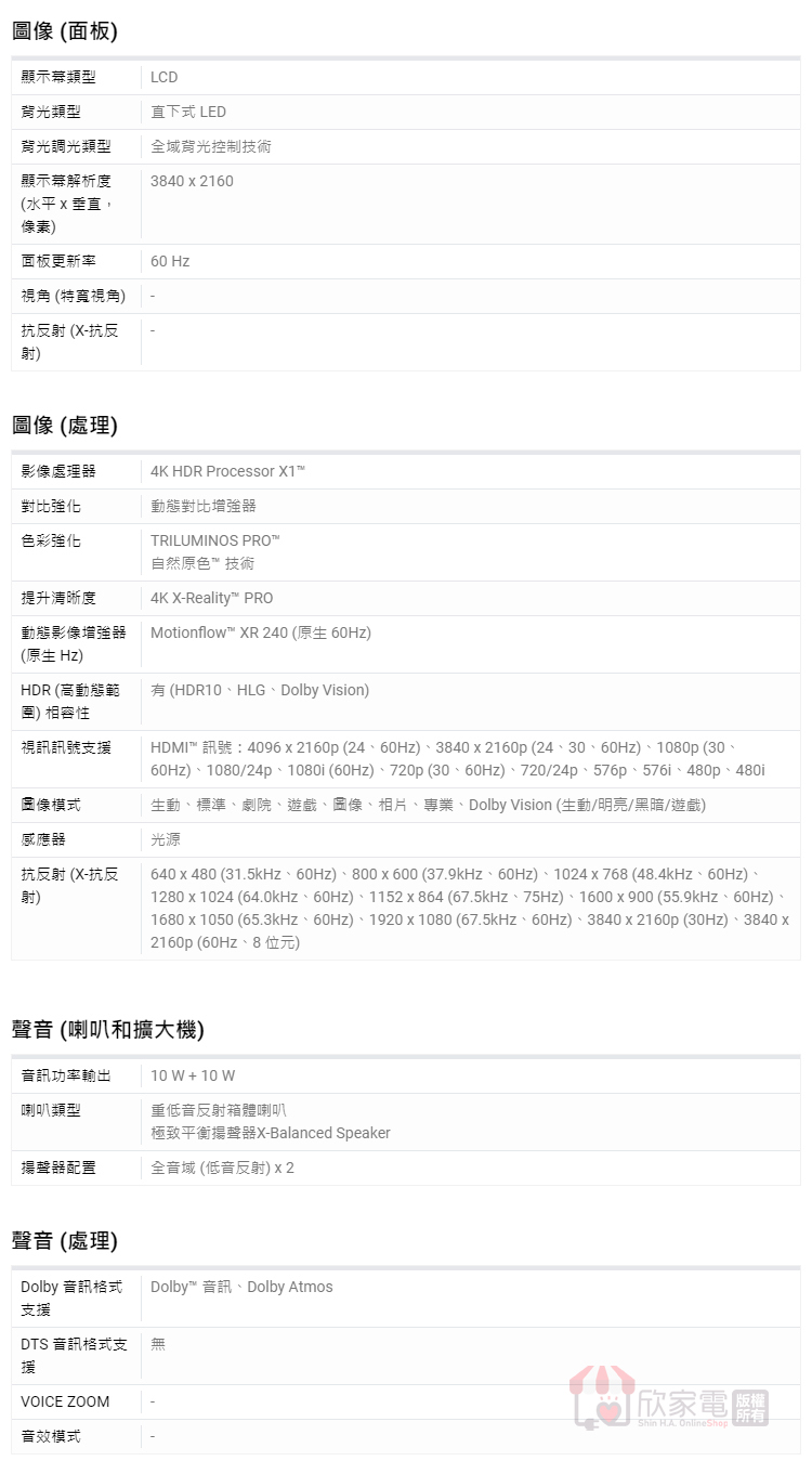 SONY 索尼 55型【BRAVIA 3 系列】4K 智慧顯示器