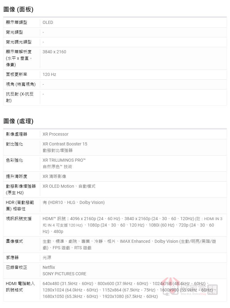 SONY 索尼 55型【BRAVIA 8 系列】4K OLED 智慧顯示器