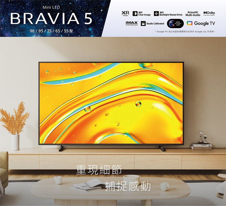 SONY 索尼 65型【BRAVIA 5 系列】4K Mini LED 智慧顯示器