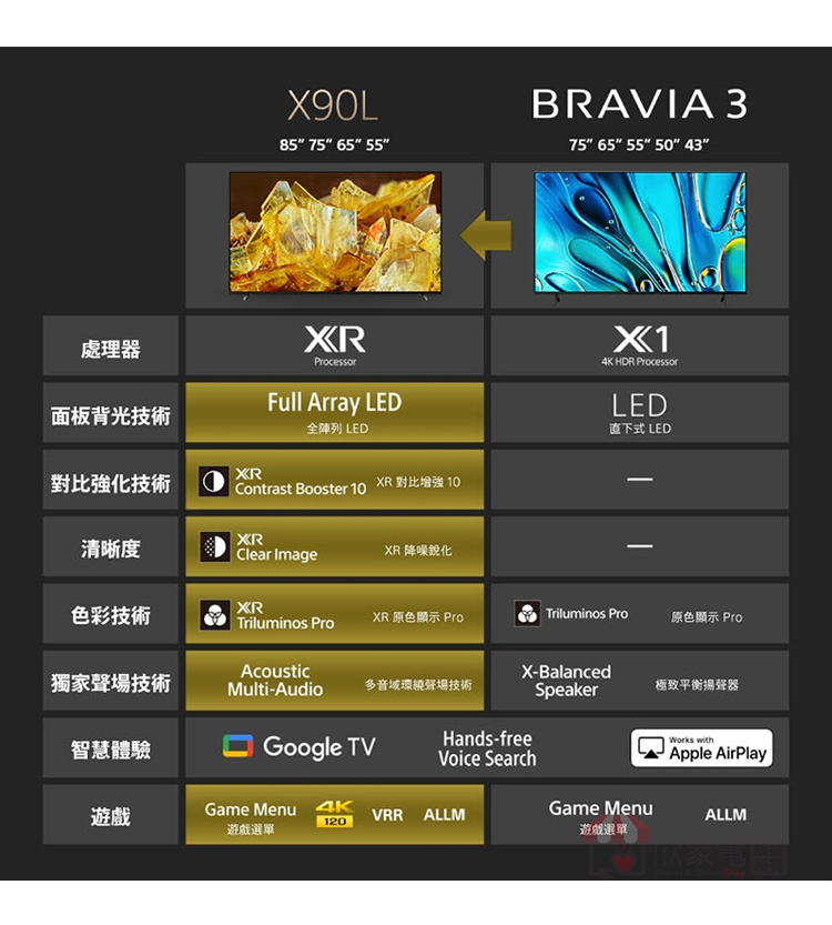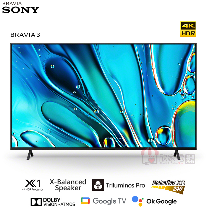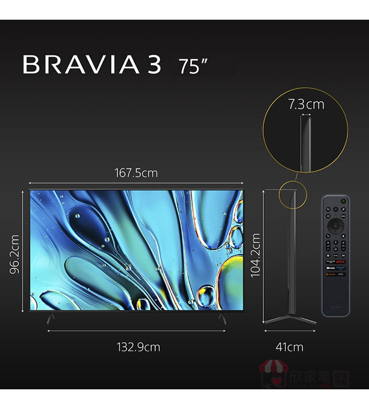 SONY 索尼 75型【BRAVIA 3 系列】4K 智慧顯示器