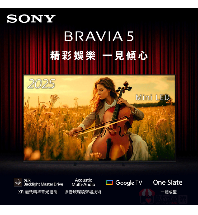 SONY 索尼 75型【BRAVIA 5 系列】4K Mini LED 智慧顯示器