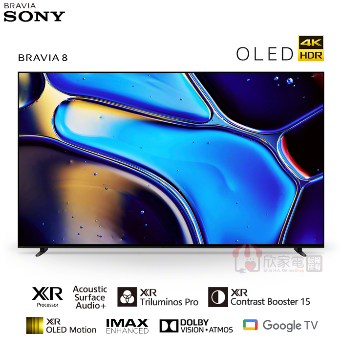 SONY 索尼 77型【BRAVIA 8 系列】4K OLED 智慧顯示器