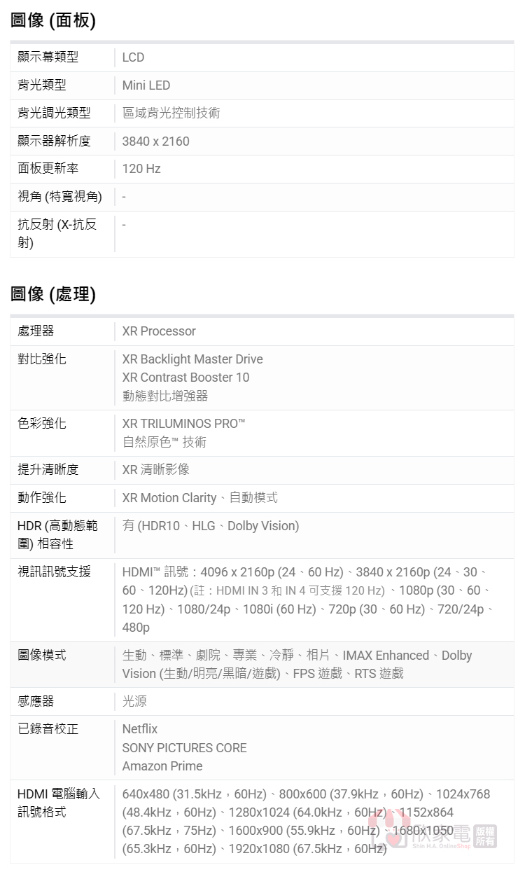 SONY 索尼 85型【BRAVIA 5 系列】4K Mini LED 智慧顯示器