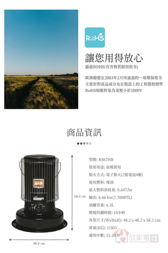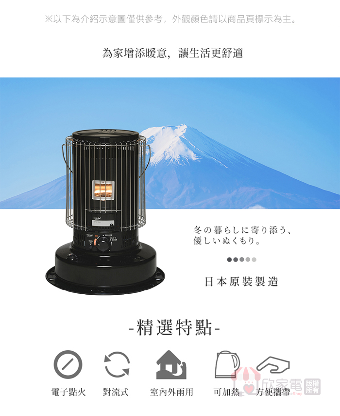※商品限用煤油,請勿添加煤油以外之溶劑,添加其他油品/溶劑將影響到商品的保固權益。
