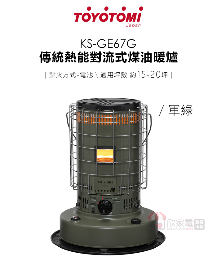 日本 TOYOTOMI 傳統熱能對流式煤油暖爐-軍綠色