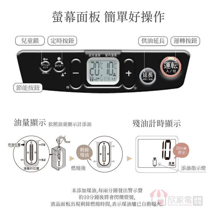 ※商品限用煤油,請勿添加煤油以外之溶劑,添加其他油品/溶劑將影響到商品的保固權益。