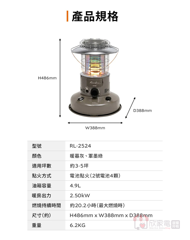 ※商品限用煤油,請勿添加煤油以外之溶劑,添加其他油品/溶劑將影響到商品的保固權益。