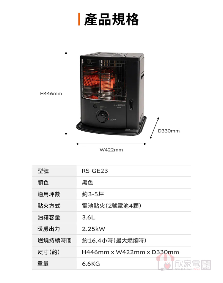 ※商品限用煤油,請勿添加煤油以外之溶劑,添加其他油品/溶劑將影響到商品的保固權益。
