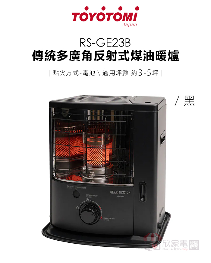 日本 TOYOTOMI 傳統多廣角反射式煤油暖爐-曜石黑