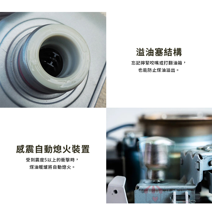 安全裝置:感震自動熄火裝置 (震度5以上)、氣密油箱添油熄火裝置