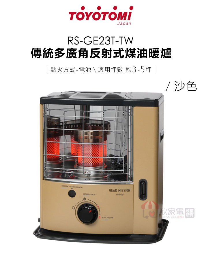 日本 TOYOTOMI 傳統多廣角反射式煤油暖爐-沙色