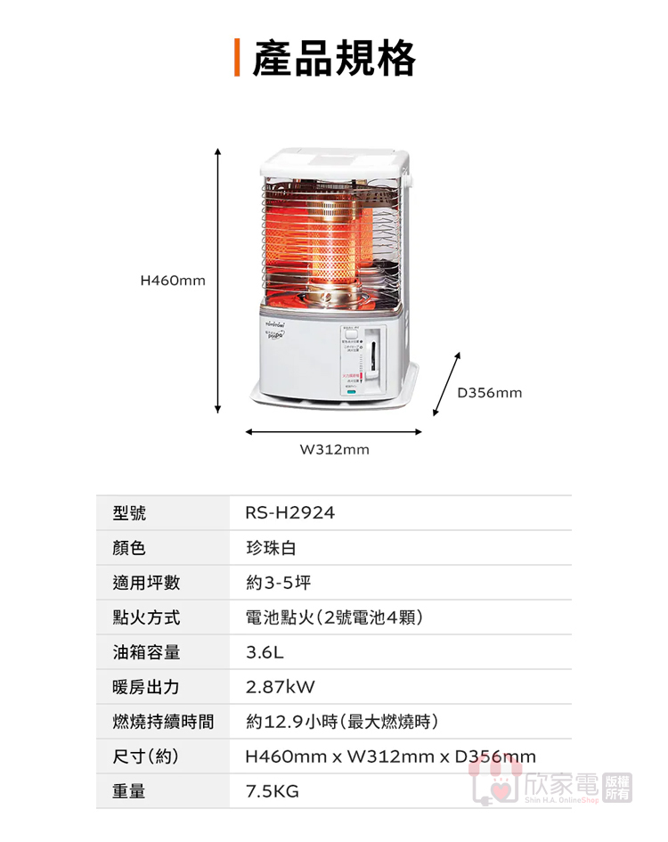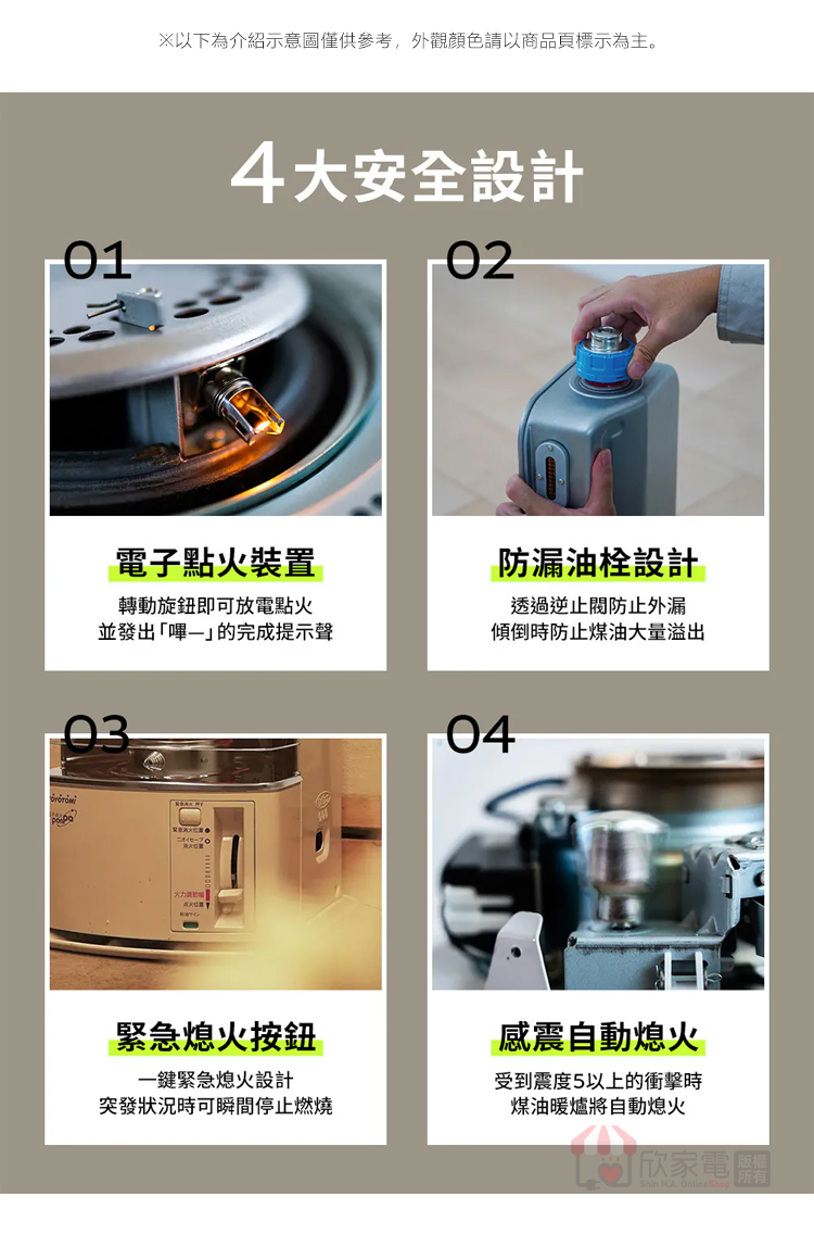 ※商品限用煤油,請勿添加煤油以外之溶劑,添加其他油品/溶劑將影響到商品的保固權益。
