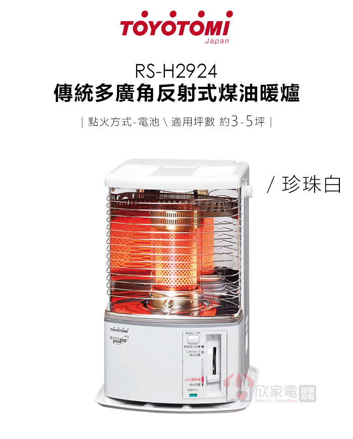 日本 TOYOTOMI 傳統多廣角反射式煤油暖爐-珍珠白
