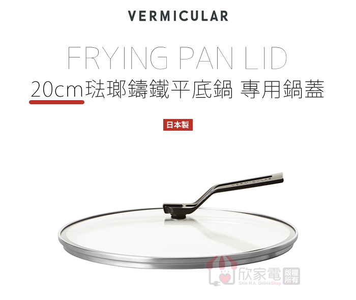 日本 Vermicular 20CM琺瑯鑄鐵平底鍋專用鍋蓋