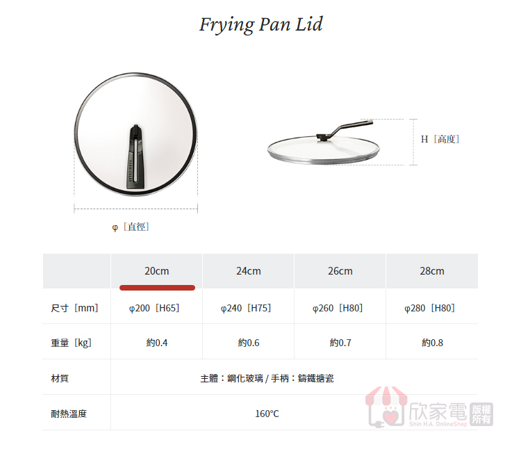 材質:鍋蓋本體-強化玻璃、不鏽鋼/手把-琺瑯鑄鐵