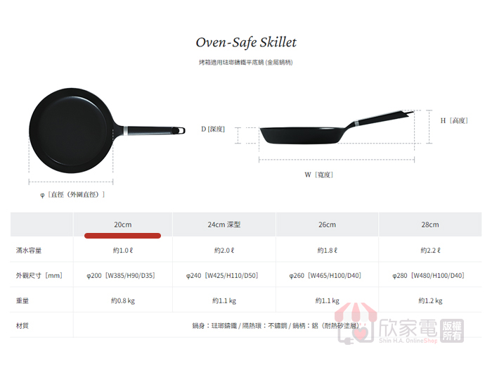 材質:鍋身-琺瑯鑄鐵/隔熱環-不鏽鋼/鍋柄-鋁(耐熱矽塗層)