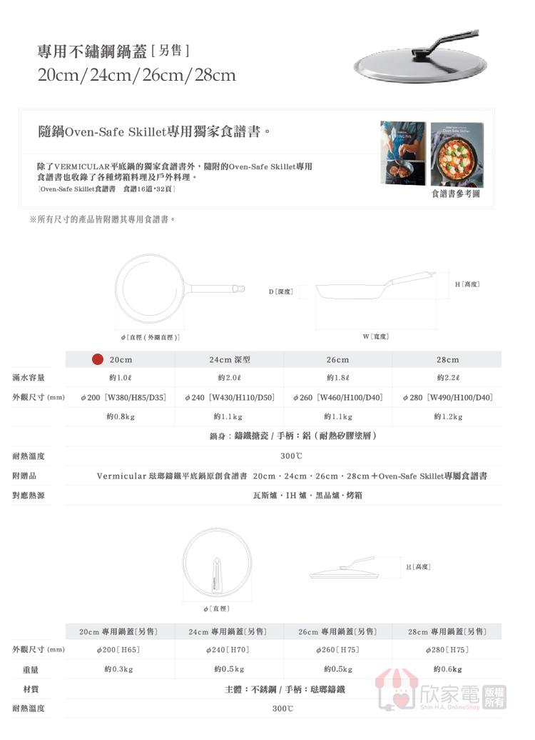 日本 Vermicular 20CM 烤箱適用琺瑯鑄鐵平底鍋