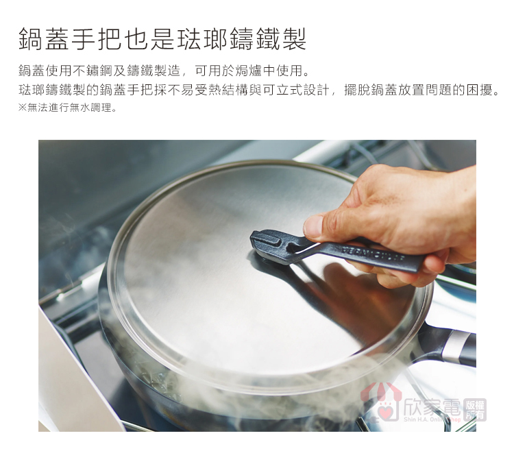 材質:鍋蓋本體-不鏽鋼/手把-琺瑯鑄鐵